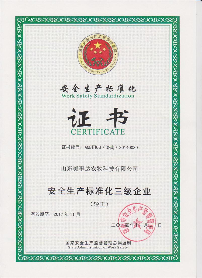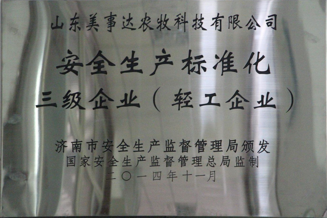 近日,濟南市安全生產監督管理局為我公司頒發了安全生產標準化證書和銅牌,這標志著我公司在安全生產方面進入了一個全新的階段,圖片為我公司取得的安全生產標準化證書和銅牌。