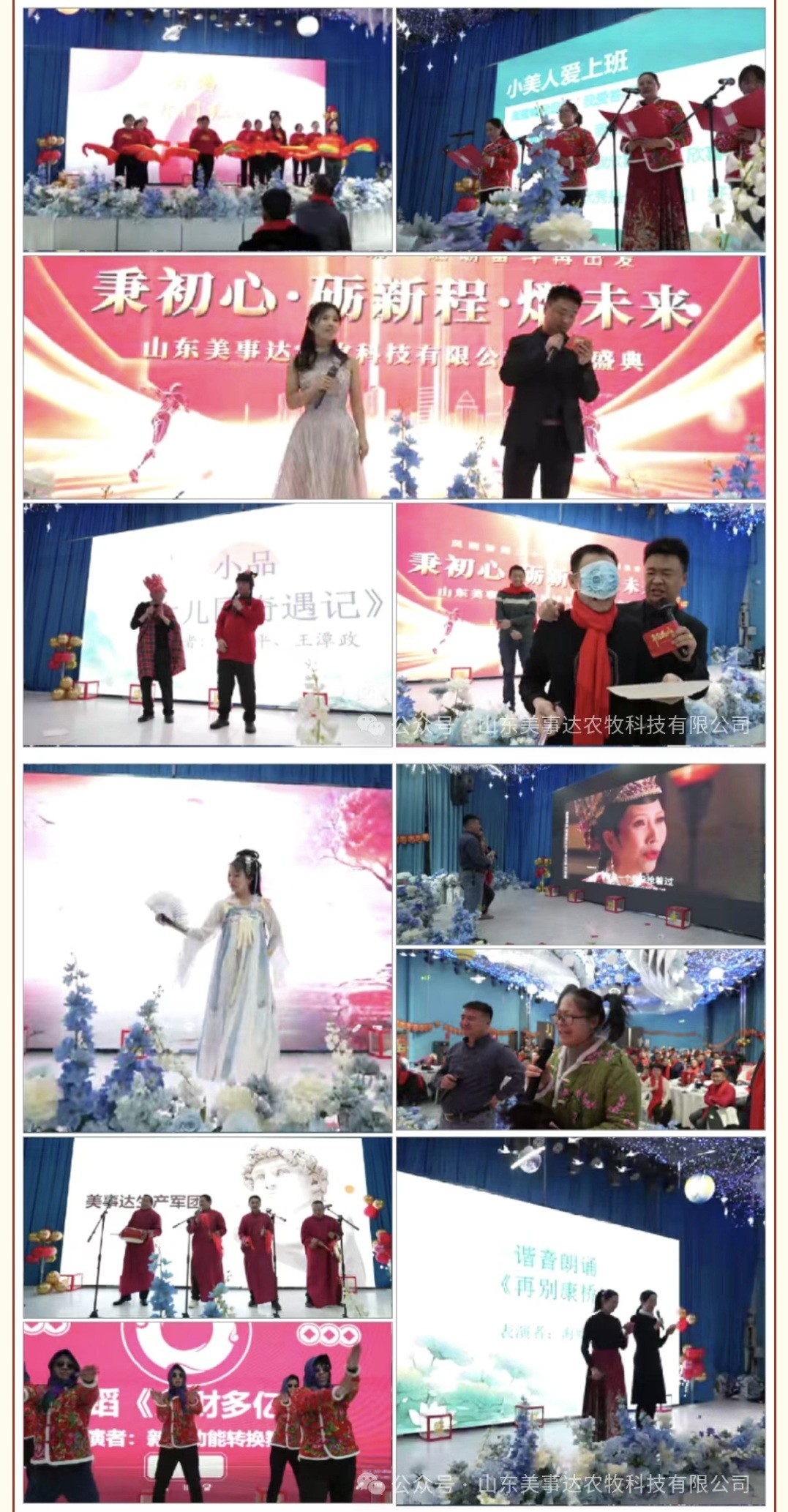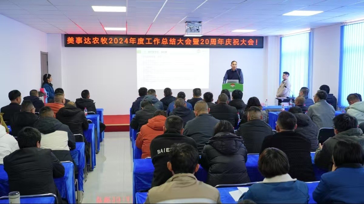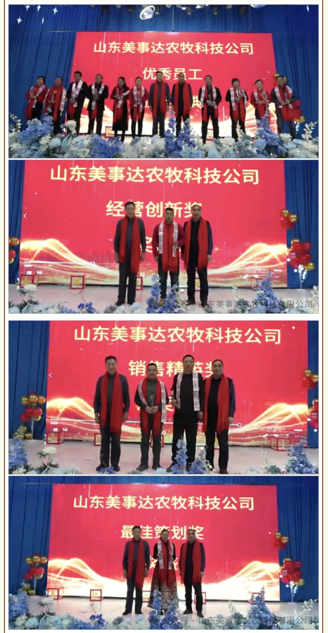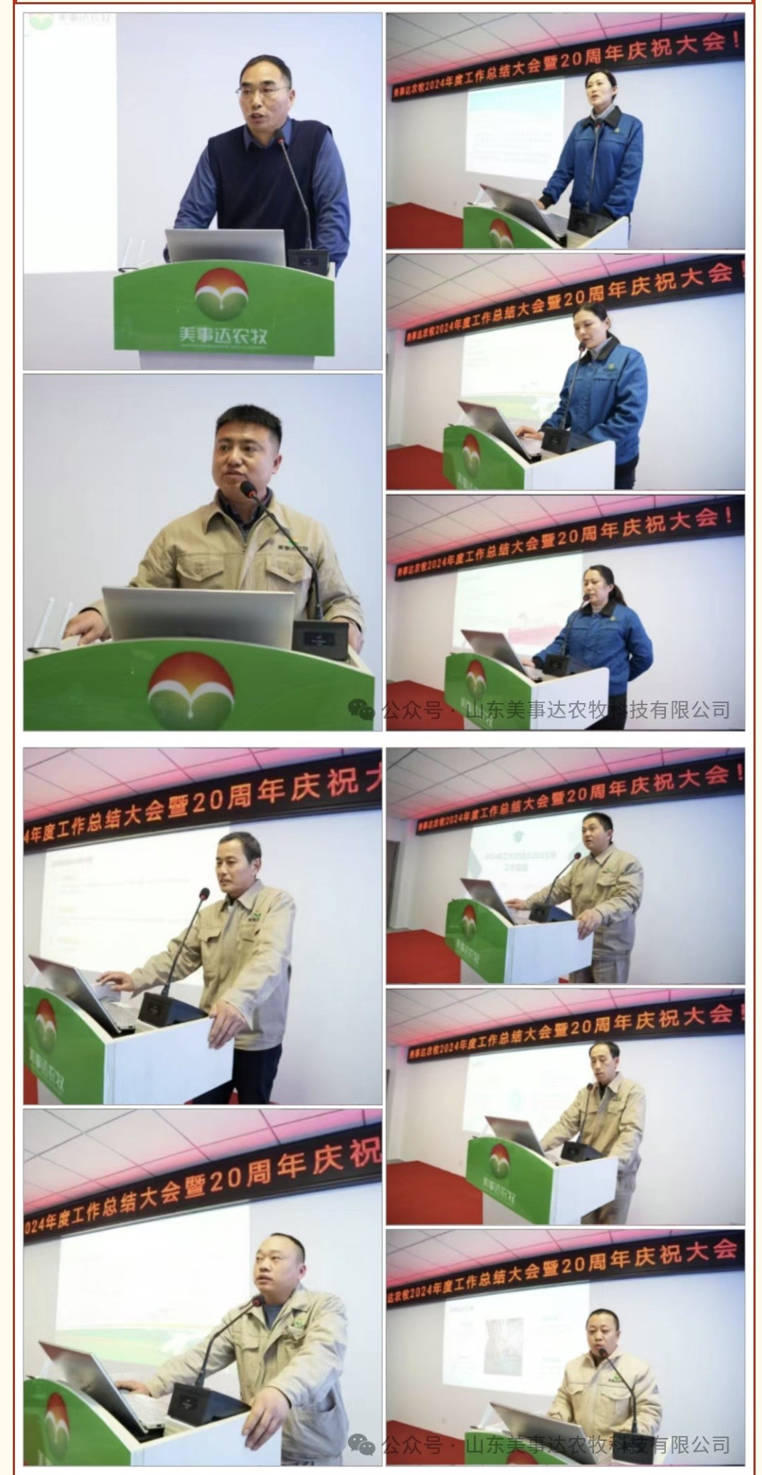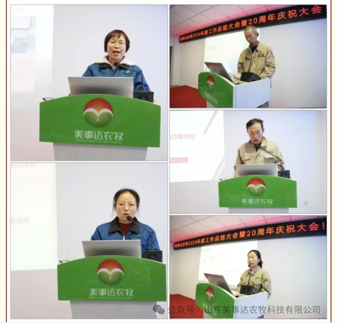 ? ? ? ? 風(fēng)雨兼程二十載,砥礪奮斗再出發(fā)。2025年1月18日下午,美事達(dá)農(nóng)牧2024年工作總結(jié)大會暨成立20周年慶祝大會在公司新辦公樓會議室如期舉行。山東省農(nóng)業(yè)科學(xué)院畜牧獸醫(yī)研究所盛清凱研究員、趙紅波研究員、張相倫博士,山東農(nóng)業(yè)工程學(xué)院農(nóng)業(yè)科技學(xué)院副院長刁有江教授、公司總經(jīng)理?xiàng)钰w軍、部分核心客戶及全體員工齊聚一堂,共同回顧公司過去一年的工作和成果,并繪制新一年的發(fā)展藍(lán)圖。會議由副總經(jīng)理李曉鵬主持。