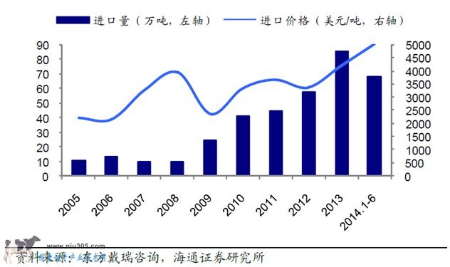 ? ? 巨大的懸殊差距,業內將矛頭齊聲指向罪魁禍首——層層加碼的經銷商。因為刨除增值稅、關稅、運費成本外,剩下的錢合理解釋就是經銷商拿去了。然而,海關數據顯示,2014年1-6月,我國進口奶粉68.12萬噸,同比增加75.08%,進口平均價格為5,041美元/噸,同比上漲46%。