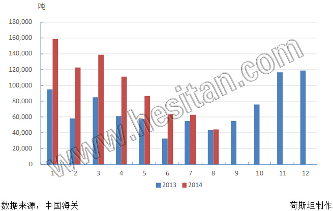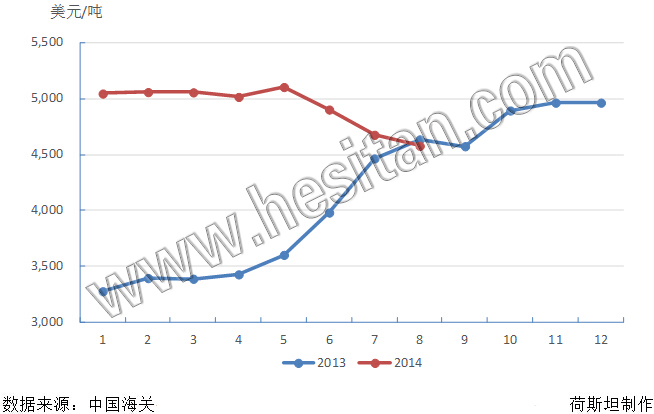 8月進口4.41萬噸,環比下降29.98%,同比增加1.77%,進口額為20,174.01萬美元,同比增加0.50%,其中從新西蘭進口34,557.15噸、美國2,790.41噸、澳大利亞795.00噸、歐盟5,673.91噸。8月奶粉進口平均價格為4,578.75美元/噸,同比下降1.25%。