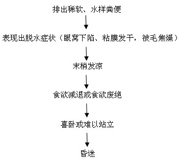 ●患犢常在腹瀉前表現出嚴重的脫水癥狀,部分病例死亡前無腹瀉癥狀;