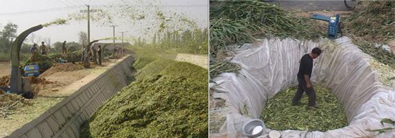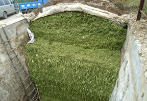 ![]() ? 青貯的方式有很多種,根據飼養規模,地理位置,經濟條件和飼養習慣可分為:窖貯、袋貯、包貯、池貯和塔貯,也可在平面上堆積青貯等等。現就幾種常用的青貯方式及其方法介紹如下: 1、窖貯 窖貯是一種最常見、最理想的青貯方式。雖一次性投資大些,但窖堅固耐用,使用年限長,可常年制作,貯藏量大,青貯的飼料質量有保證。 根據地勢及地下水位的高低可將青貯窖分為:地下、地上和半地下三種形式。 (1)選址:一般要在地勢較高、地下水位較低、背風向陽、土質堅實、離飼舍較近、制作和取用青貯飼料方便的地方。 ![]() (2)窖的形狀與大小:窖的形狀一般為長方形,窖的深淺、寬窄和長度可根據所養牛羊的數量、飼喂期的長短和需要儲存的飼草數量進行設計。青貯窖四壁要平整光滑,最好用磚或石頭壘砌,再用水泥抹上。也可以用土坯砌成土窖,但底面和四周要用水泥抹面,或全部用塑料薄膜鋪面,一定要注意防止滲水和漏氣。要能夠密封,防止空氣進入,且有利于飼草的裝填壓實。窖底部從一端到另一端須有一定的坡度,或一端建成鍋底形,以便排除多余的汁液。一般每立方米窖可青貯全株玉米500-600公斤。 (3)制作過程:原料切割的長度一般為1cm—3cm左右(如過長則不利于壓實,切的短,裝填時可以壓的更實,有利于排除其中的空氣。也有利于以后青貯飼料的取用,牲畜也便于采食減少浪費),切短后的青貯原料要及時裝入青貯窖內,可采取邊粉碎邊裝窖邊壓實的辦法。 ??????裝窖時,每裝20至40厘米左右時就要踩實一次(若有機械進行壓踏更為理想),特別要注意踩實青貯窖的四周和邊角。同時檢查原料的含水量(一般要求在65%左右),盡可能縮短青貯過程中微生物有氧活動的時間。?如果當天或者一次不能裝滿全窖,?可在已裝窖的原料上立即蓋上一層塑料薄膜,次日繼續裝窖。青貯原料一般要求含糖不得低于2.0%(如果原料中沒有足夠的糖分,就不能滿足乳酸菌的需要)。青貯玉米含有較豐富的糖分(一般在4%以上),所以青貯時不需添加其他含糖量高的物質。切記在青貯過程中一定要壓實,否則氧氣殘留過多,會導致部分原料發生霉變,這是導致青貯失敗的主要原因之一。 盡管青貯原料在裝窖時進行了踩壓,但經數天后仍會發生下沉。這主要是受重力的影響,原料間空隙減少及水分流失的原因。為此,在裝窖時,青貯原料裝滿后,還需再繼續裝至原料高出窖的邊沿50厘米至80厘米,?然后用整塊塑料薄膜封蓋,再蓋1-2層草包片,草席等物,最后用泥土壓實?泥土厚度約30厘米至40厘米并把表面拍打光滑,窖頂隆起成饅頭形狀。 隨著青貯的成熟及土層壓力,窖內青貯料會慢慢下沉,土層上會出現裂縫,出現漏氣,如遇雨天,雨水會從縫隙滲入,使青貯料敗壞。有的因裝窖時踩踏不實,時間稍長,青貯窖會出現窖面低于地面,雨天會積水。因此,要隨時觀察青貯窖,發現裂縫或下沉,要及時覆土,以保證青貯成功。 一般經過40天—50天(20-35℃/天)的密閉發酵后,即可取用飼喂家畜。(保存好的青貯飼料可以存貯幾年或十幾年的時間)。 2、包貯 裹包青貯是一種利用機械設備完成秸稈或飼料青貯的方法,是在傳統青貯的基礎上研究開發的一種新型飼草料青貯技術。 ![]() (1)裹包青貯的制作(如圖) 將粉碎好的青貯原料用打捆機進行高密度壓實打捆,然后通過裹包機用拉伸膜包裹起來,從而創造一個厭氧的發酵環境,最終完成乳酸發酵過程。這種慶祝方式已被歐洲各國、美國和日本等世界發達國家廣泛認可和使用,在我國有些地區也已經開始嘗試使用這種青貯方式,并逐漸把它商品化。 (2)裹包青貯的優點 裹包青貯與常規青貯一樣,有干物質損失較小、可長期保存、質地柔軟、具有酸甜清香味、適口性好、消化率高、營養成分損失少等特點。同時還有以下幾個優點:制作不受時間、地點的限制,不受存放地點的限制,若能夠在棚室內進行加工,也就不受天氣的限制了。與其他青貯方式相比,裹包青貯過程的封閉性比較好,通過汁液損失的營養物質也較少,而且不存在二次發酵的現象。此外裹包青貯的運輸和使用都比較方便,有利于它的商品化。這對于促進青貯加工產業化的發展具有十分重要的意義。 (3)裹包青貯的缺點 裹包青貯雖然有很多優點,但同時也存在著一些不足。一是這種包裝很容易被損壞,一旦拉伸膜被損壞,酵母菌和霉菌就會大量繁殖,導致青貯料變質、發霉。二是容易造成不同草捆之間水分含量參差不齊,出現發酵品質差異,從而給飼料營養設計帶來困難,難以精確的掌握恰當的供給量。 3、堆貯 平面堆積青貯適用于養殖規模較小的農戶,如養奶牛3-5頭或者養羊20-50只,可以采用這種方式,平面堆積青貯的特點是使用期較短,成本低,一次性勞動量投入較小。制作的時候需要注意青貯原料的含水量(一般要求在65%左右),要壓實,要密閉。這些環節會直接影響青貯料的品質 ? |